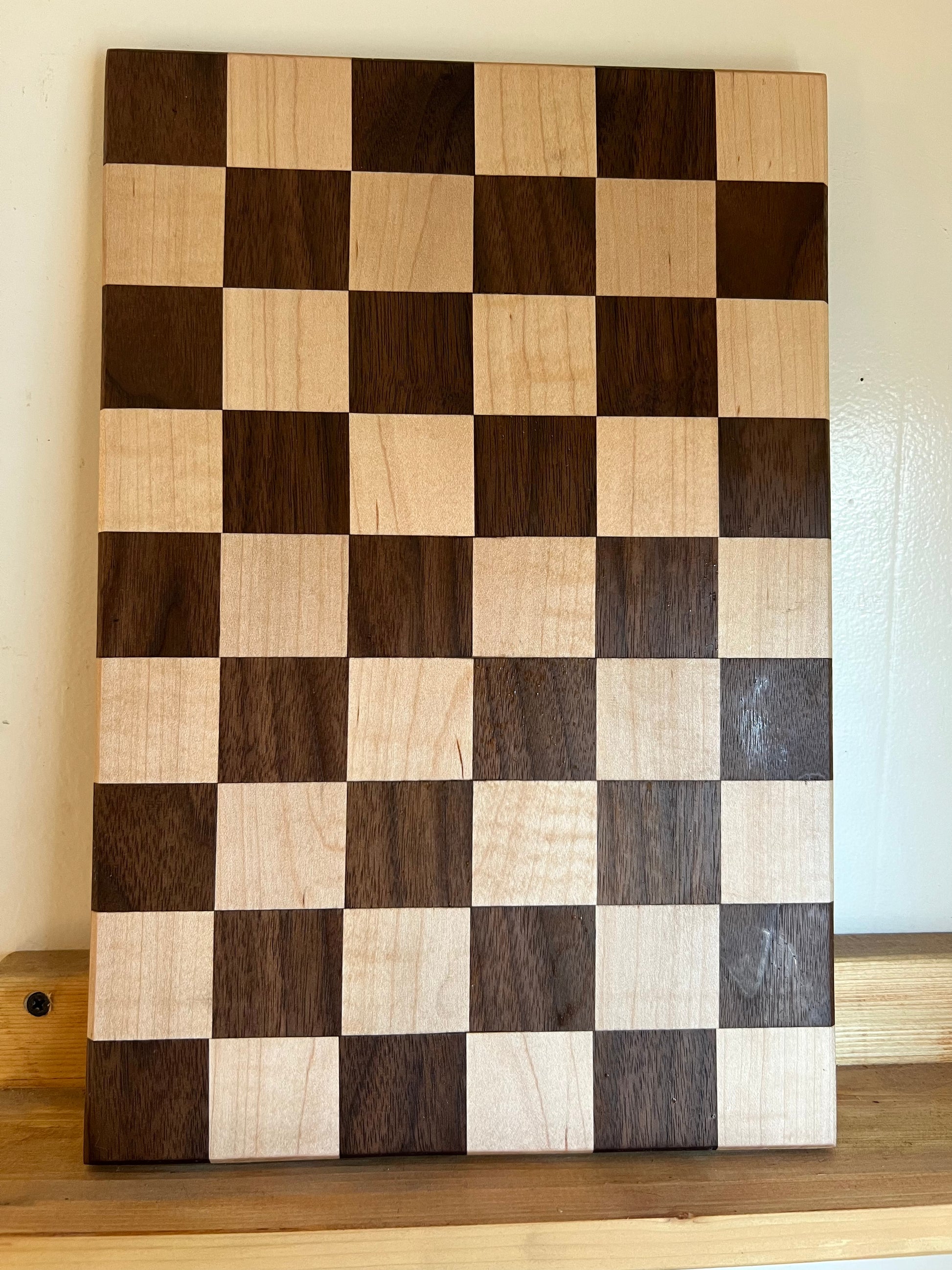 A beautiful 12 x 18 maple and walnut checkerboard cutting board.